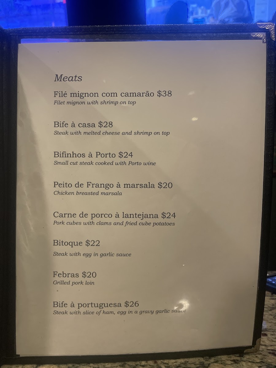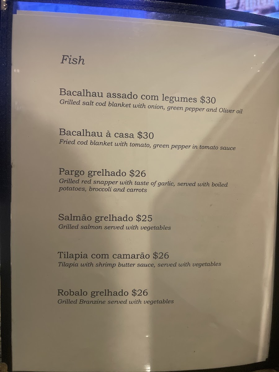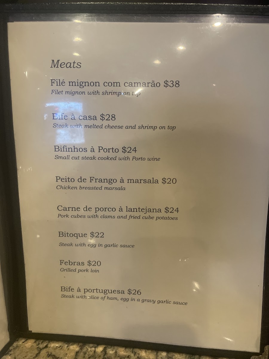 From a reviewer’s perspective, the menu at Serrano Restaurant offers a concise but appealing selection of entrées that highlight both seafood and meat options. Dishes like Catfish House Style and Grilled Red Snapper showcase the restaurant’s focus on flavorful fish preparations, while the Grilled Salmon provides a familiar favorite for those seeking a lighter yet satisfying option. For guests who prefer heartier meals, the House Steak and Portuguese Beef round out the entrée selection with rich, savory choices that reflect a more traditional, comforting style of cooking. Overall, the menu may not be extensive, but the variety between seafood and meat entrées gives diners a balanced selection, making it easy to find something enjoyable whether you’re in the mood for grilled fish or a well-prepared steak dish.