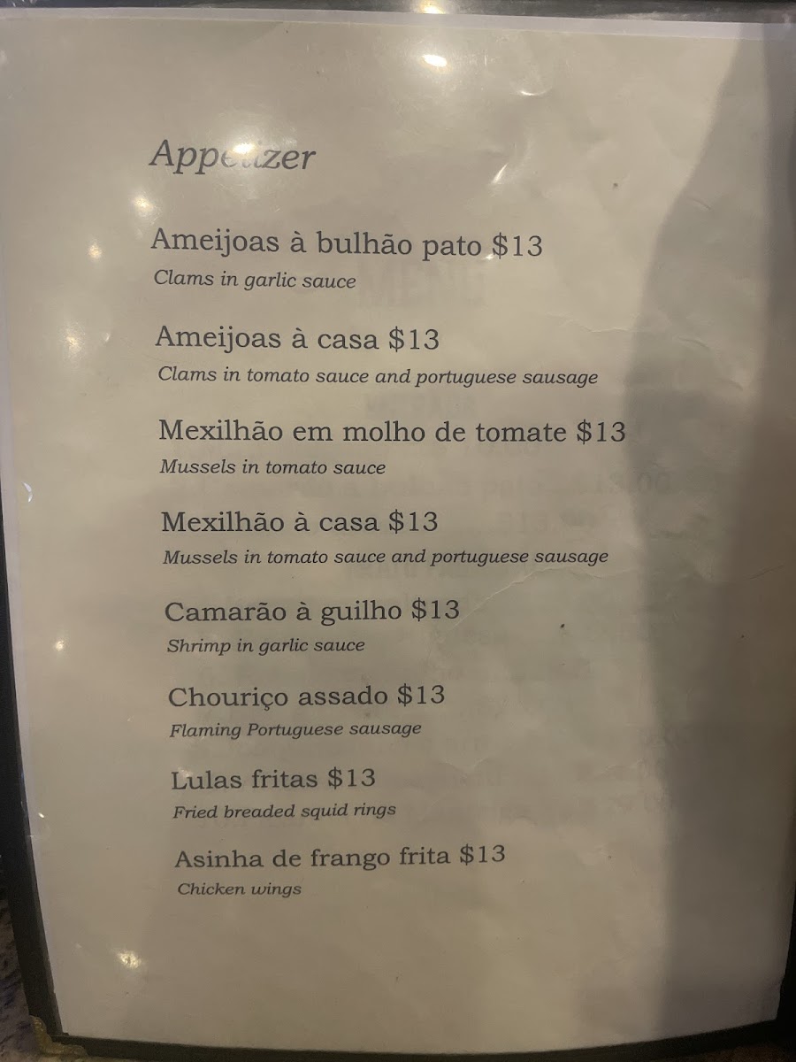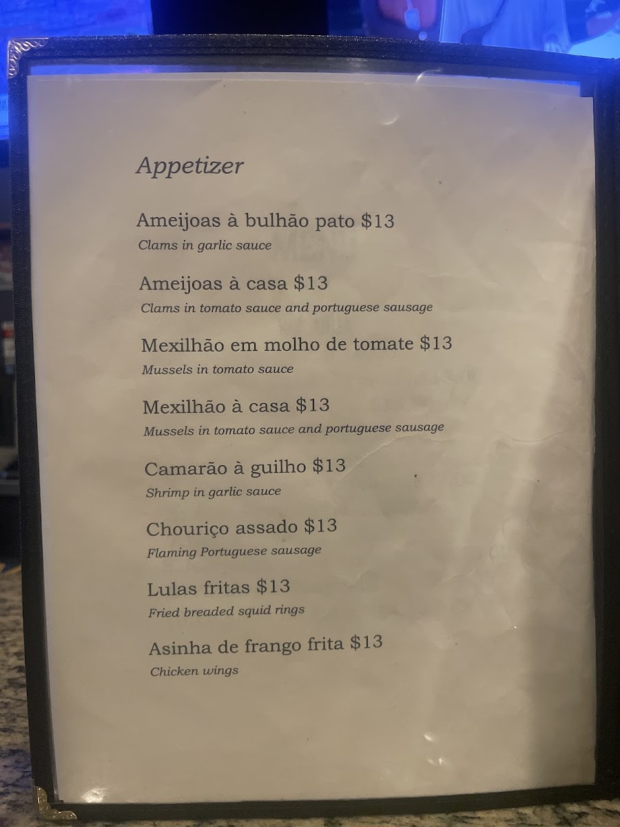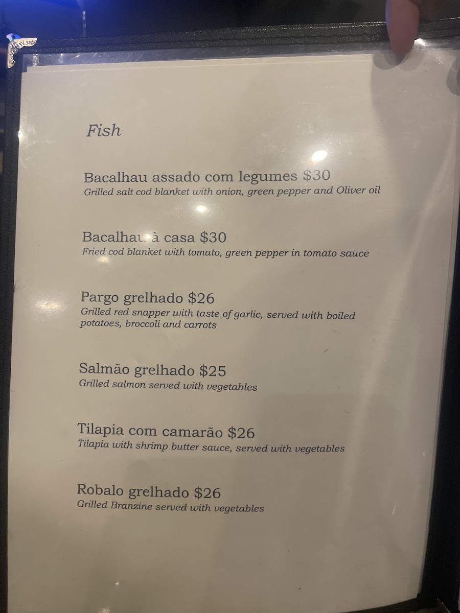 From a reviewer’s perspective, the menu at Serrano Restaurant offers a concise but appealing selection of entrées that highlight both seafood and meat options. Dishes like Catfish House Style and Grilled Red Snapper showcase the restaurant’s focus on flavorful fish preparations, while the Grilled Salmon provides a familiar favorite for those seeking a lighter yet satisfying option. For guests who prefer heartier meals, the House Steak and Portuguese Beef round out the entrée selection with rich, savory choices that reflect a more traditional, comforting style of cooking. Overall, the menu may not be extensive, but the variety between seafood and meat entrées gives diners a balanced selection, making it easy to find something enjoyable whether you’re in the mood for grilled fish or a well-prepared steak dish.